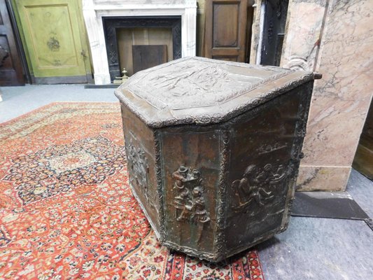 Antique French Embossed Brass Firewood Holder 1800s For Sale At
