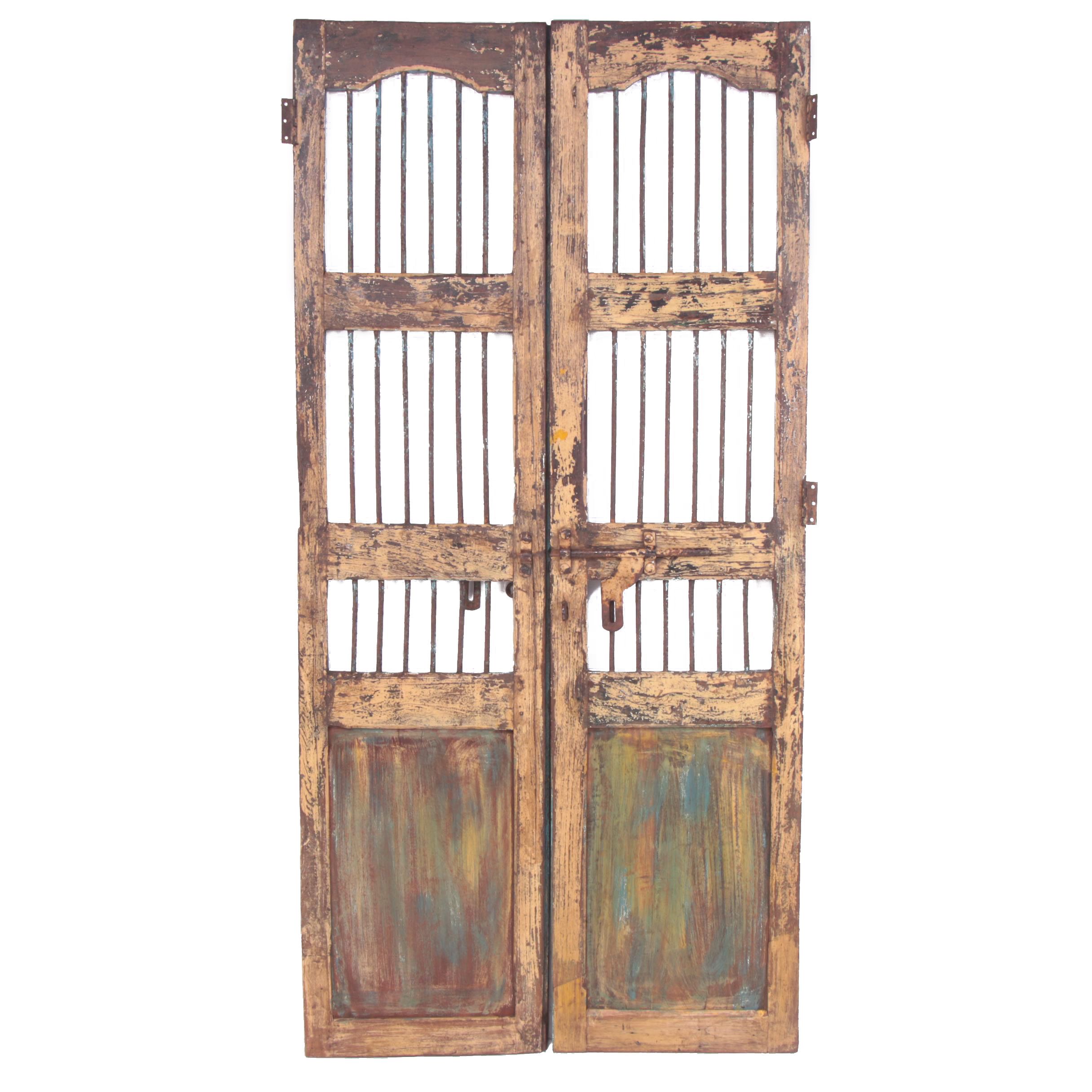 Reclaimed Indian Hardwood French Doors With Iron Security Bars