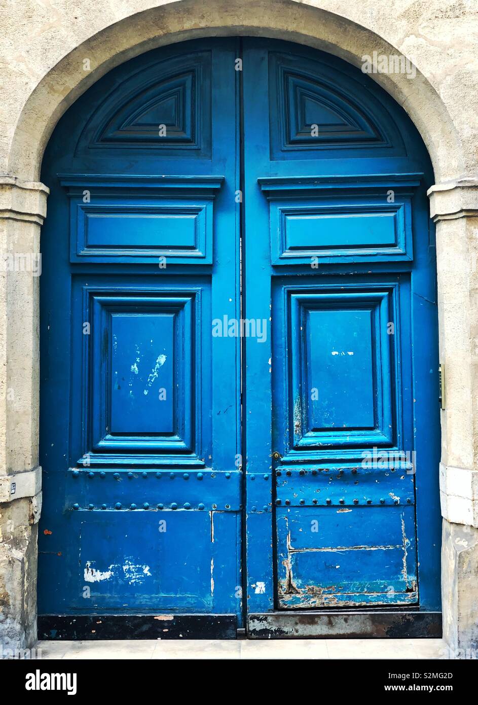 Old Blue Door In The Arched Doorway In Paris France Stock Photo
