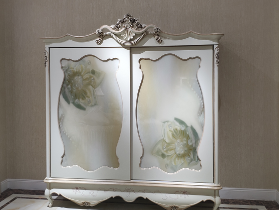 White Classic French Furniture Sliding Door Wardrobe Solid Wood