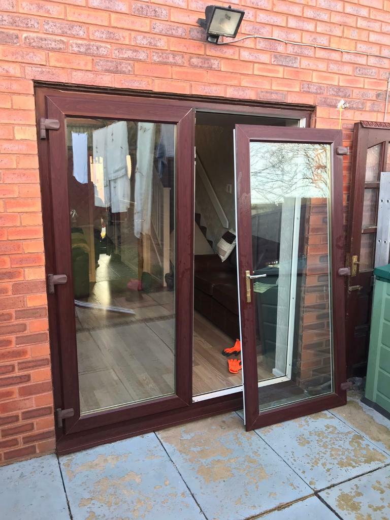 Upvc Rosewood Mahogany French Patio Doors In Wa5 Green Fur 110