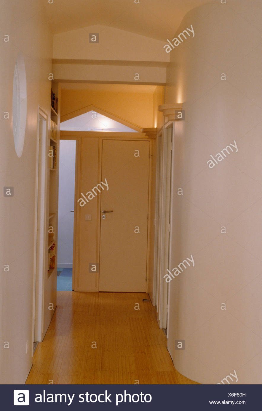 Curved Walls In Narrow Modern Hall In French Apartment Stock Photo