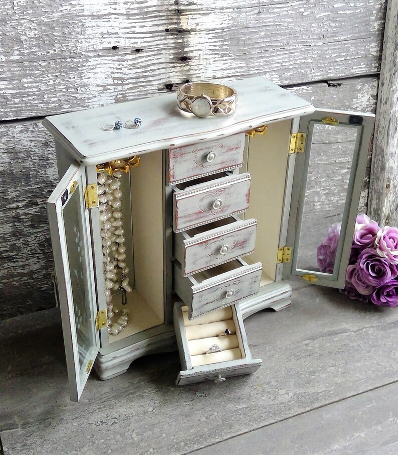 Gray Jewelry Armoire With French Doors Rustic Chic Jewelry Etsy