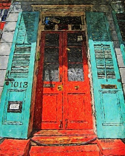 Amazon Com New Orleans French Quarter Colorful House Red Door Art