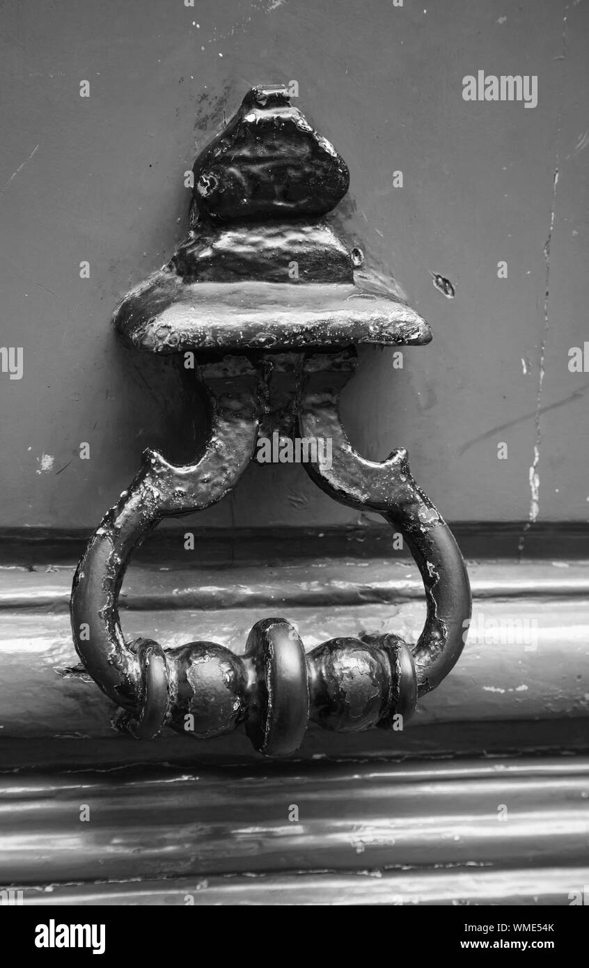 Old Rusted Knocker On Green Wooden Door In Paris France Black