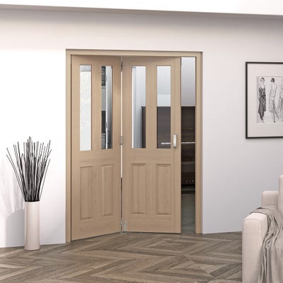 Pattern 10 French Oak Glazed Door Bi Fold Kit Internal Doors
