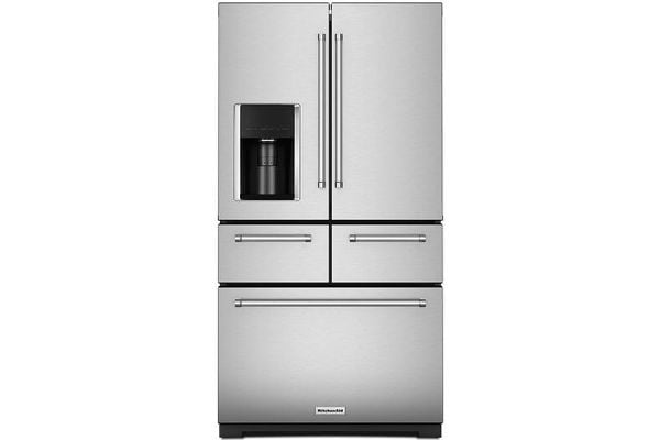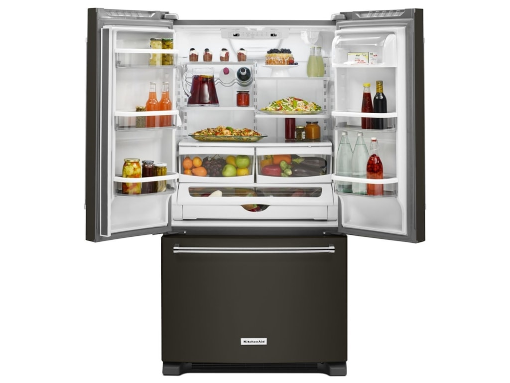 36 width standard depth french door refrigerator with interior dispense model number krff305ewh. French door stainless steel review one of kitchenaids newest fridges this model includes preserva technology and boasts a very elegant design. Learn more about the features available on the black stainless steel with printshield finish 258 cu.