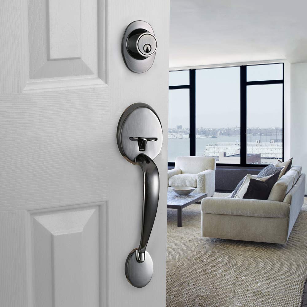 Double French Door Handle Set Satin Nickel Keyed Locking Patio