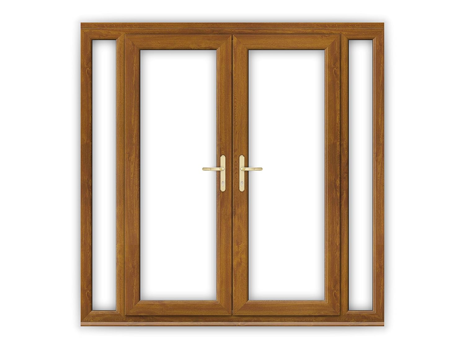 5ft Golden Oak Upvc French Doors With 2 Narrow Side Panels 2090mm