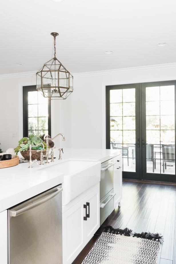 White Chef Kitchen With Black French Doors Hgtv