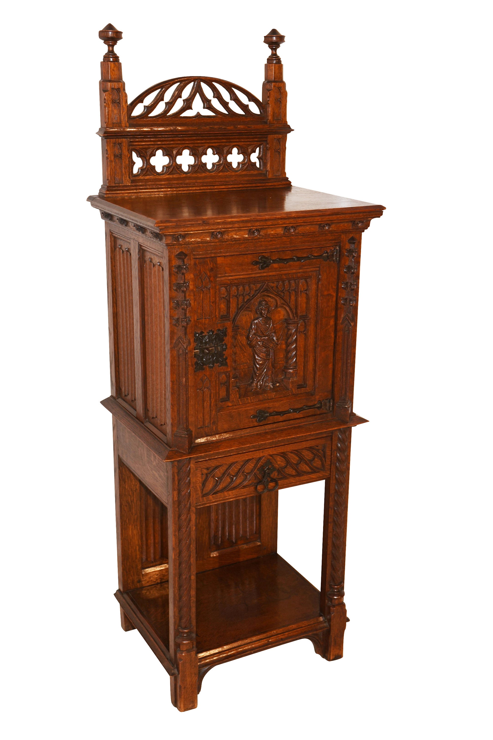 Antique French Gothic Cabinet Narrow Model Oak 19th Century Etsy