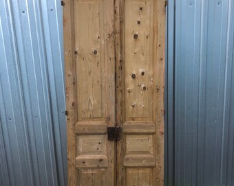 Narrow Antique Oak Double Entrance French Doors 40x84